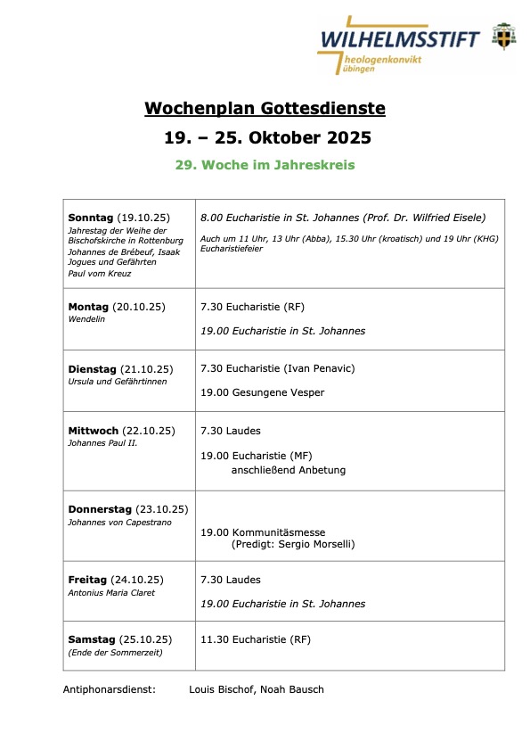 Auf vielfältige Weise und in unterschiedlichen Berufen ruft Jesus Menschen in seine Nachfolge. Der Priester ist in besonderer Weise dazu berufen, Gläubigen das Leben im Licht des Evangeliums zu deuten und Christus in der Feier der Sakramente erfahrbar zu machen. Die Ausbildung zum Priesterberuf erfolgt an der Universität und im Wilhelmsstift, dem Bischöflichen Theologenkonvikt der Diözese Rottenburg-Stuttgart.